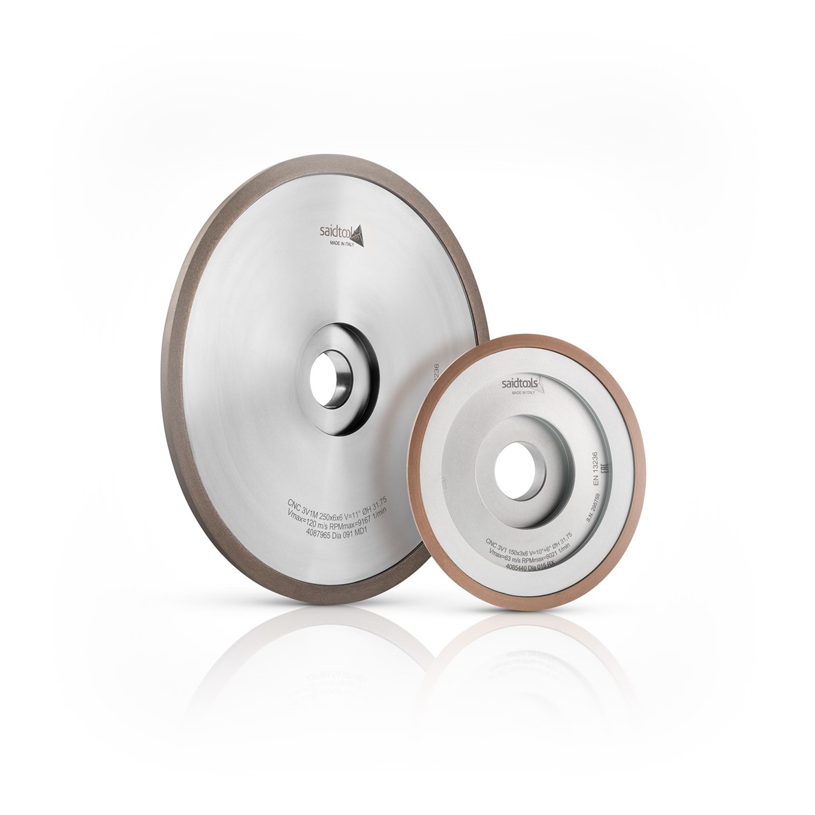 Finishing wheel with resin bond in 15 or 25 grit, which guarantees an optimal finish and a homogeneous consumption in addition to optimal profile retention.